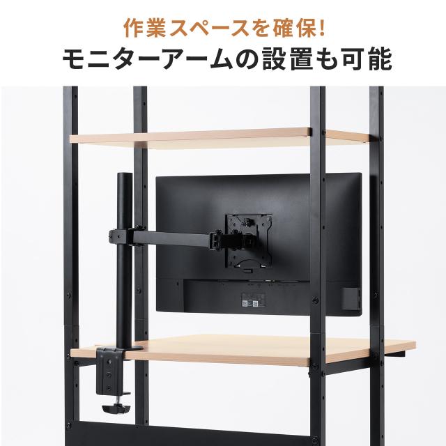 ●メイン天板や上棚にはクランプ取り付け製品を設置することができます。