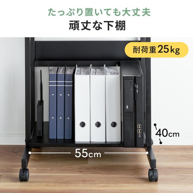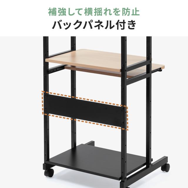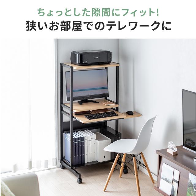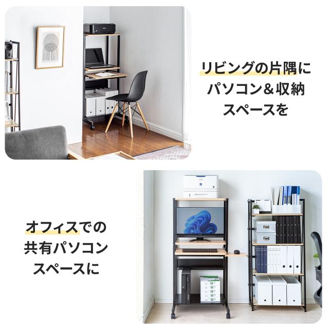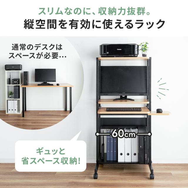 パソコンラック パソコンデスク 木目調 幅60cm 耐荷重85kg 収納棚付 キャスター付 キーボードスライダー付 マウステーブル付 スリム[100-RAC015]