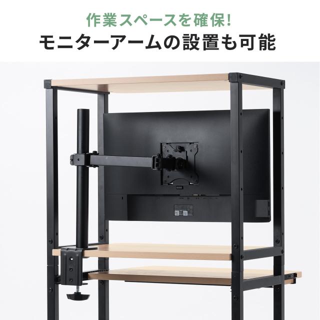 ●メイン天板や上棚にはクランプ取り付け製品を設置することができます。