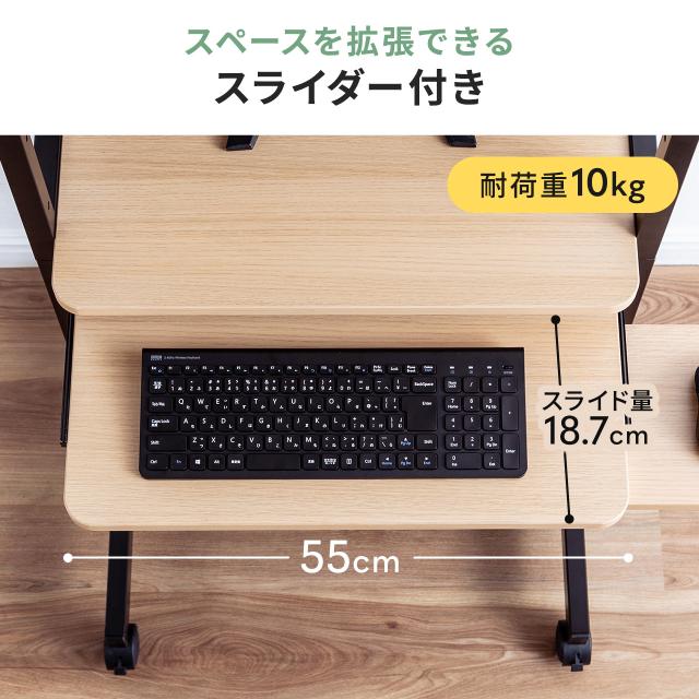 ●キーボードスライダーとマウステーブル付きなので、天板を最大限広々使えます。