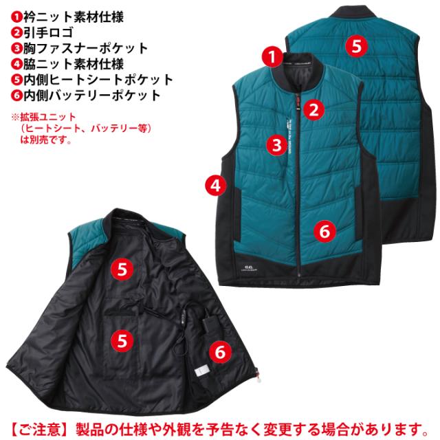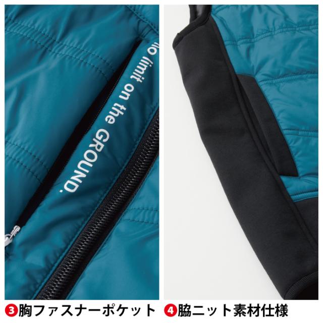 ◇機能:衿ニット素材仕様・引手ロゴ・胸ファスナーポケット・脇ニット素材仕様・内側ヒートシートポケット・内側バッテリーポケット
