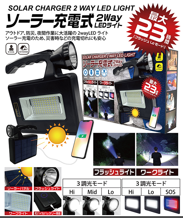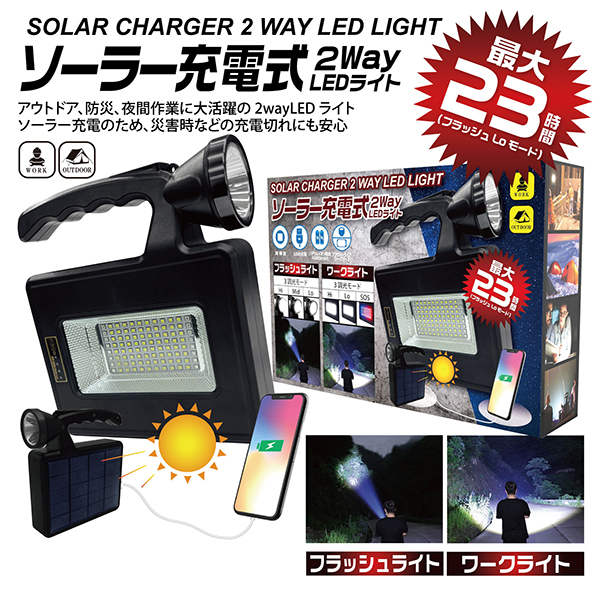 ソーラーライト 懐中電灯 ハンディライト LEDライト 明るい 屋外 台風 豪雨 大雨 災害対策 防災用品 2wayLEDライト HDL-SRL01