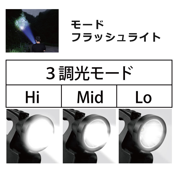 ●モード:フラッシュライト Hi、mid、Lo