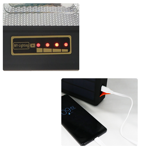 ソーラー充電のため、災害時などの充電切れにも安心