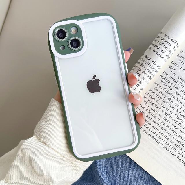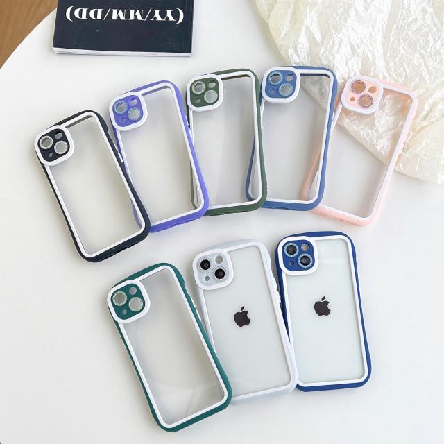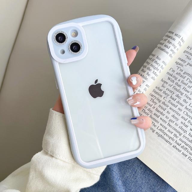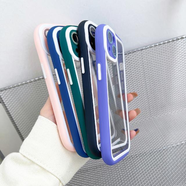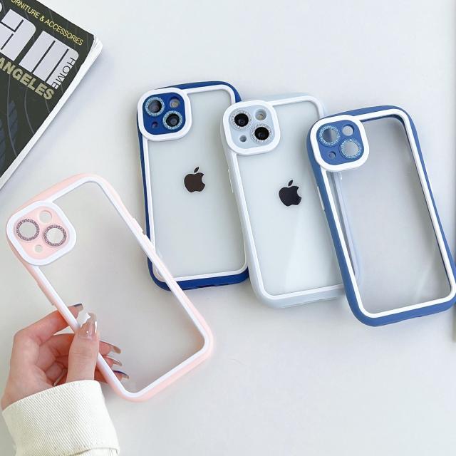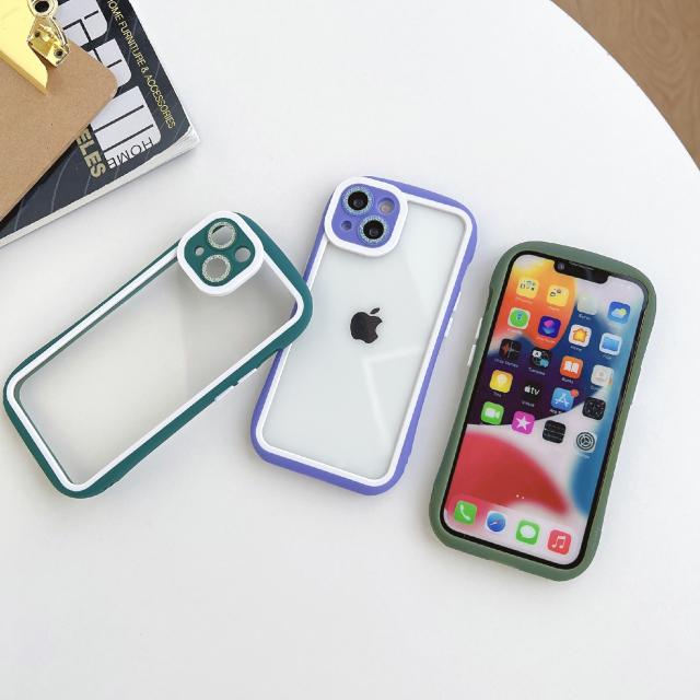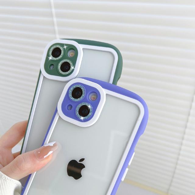 透明度の高いアクリルと柔軟性があるTPUを組み合わせた設計。iPhoneのカラーをそのまま楽しめます。キラキラのレンズ飾りでおしゃれをアップ。