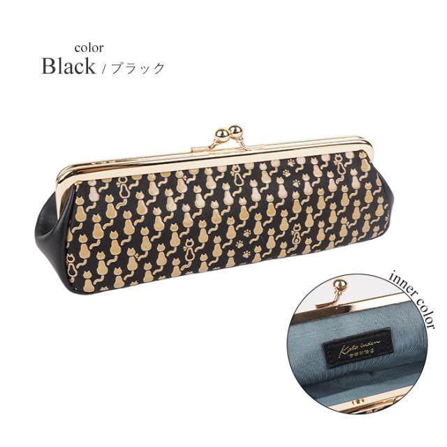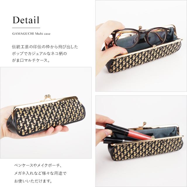 可愛らしいねこ柄を漆で表現したキュートながま口マルチケース。
