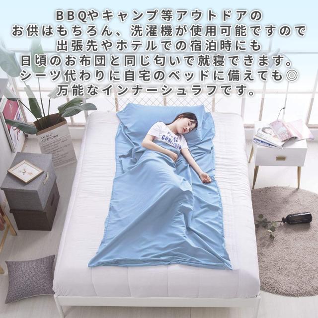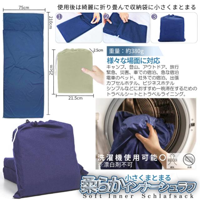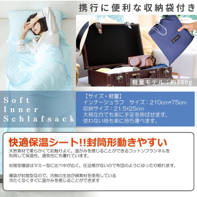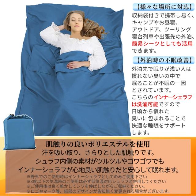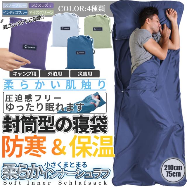 インナーシュラフ 210×75cm 寝袋 封筒型 アウトドア インナー シェラフ 洗濯 可能 トラベル シーツ 防寒 保温 快適 軽量 肌触り 旅行 列車 車中泊 キャンプ 暖 緊急 INSHERA 送料無料