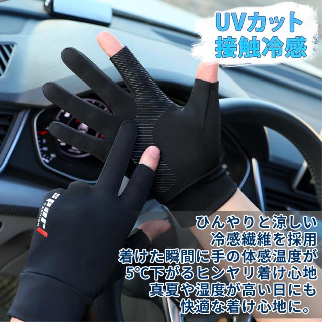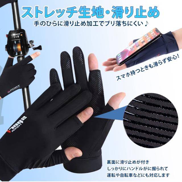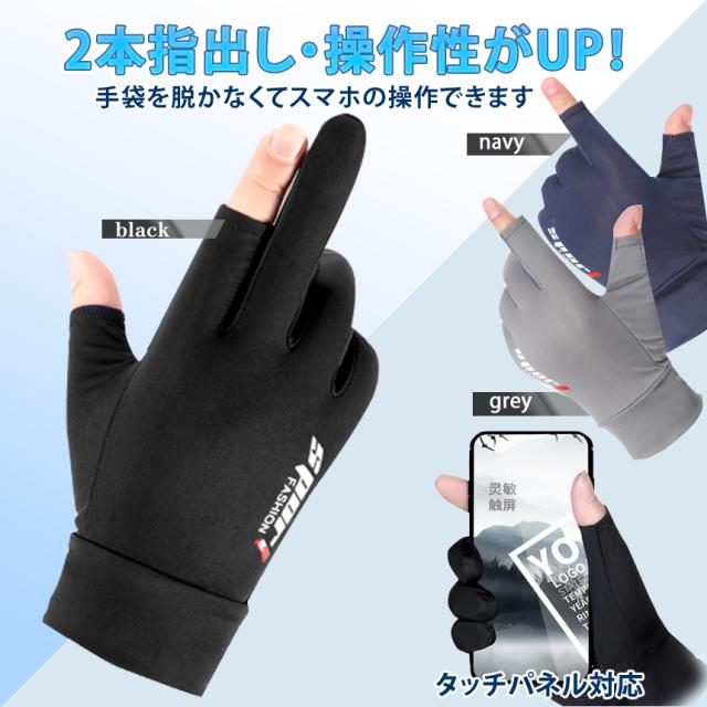 グローブ 指出し タイプ 2本 スマホ 操作 可能 UVカット 手袋 左右 滑り止め 釣り 冷感 水洗い フィッシンググローブ フィット 伸縮 ドライブ 自転車 釣り 通勤 通学 登山 スポーツ NISPO 送料無料