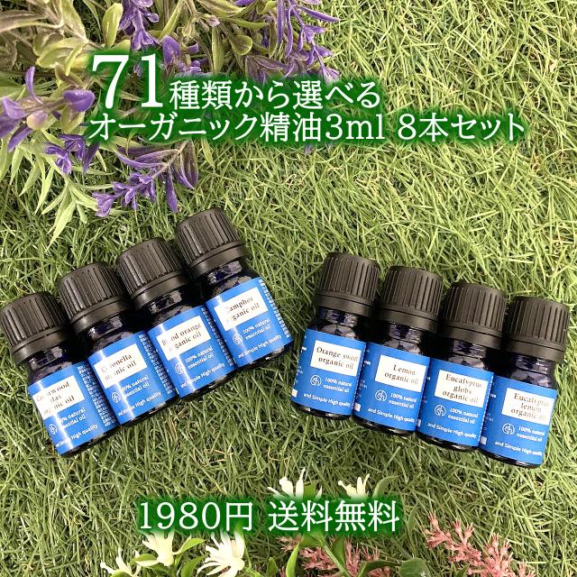 | 品名 | and simple high quality 100%天然植物 71種類から選べるオーガニック エッセンシャルオイル3ML×8本セット |