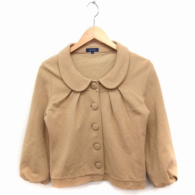 【中古】プーラフリーム pour la frime ラウンドカラー ジャケット アウター 七分袖 丸衿 無地 2 キャメル 茶 /FT23 レディース