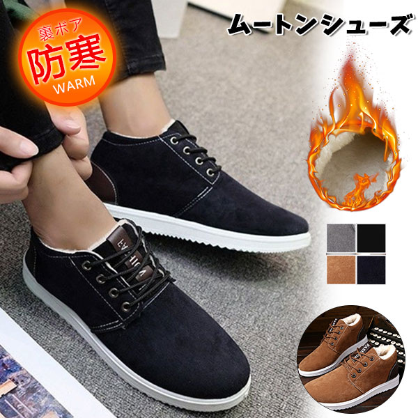 セール中 ムートンブーツ メンズ 靴 冬用 ショートブーツ スノーブーツ ふわふわ 裏起毛 防寒 ローカット 暖かい スエード調 裏ボア 男性用 紳士靴
