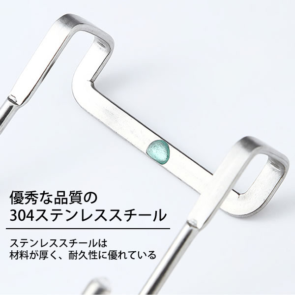 ステンレス304製なのでサビに強く丈夫です。湿気の多いキッチンやバスルームにもお使いいただけます。