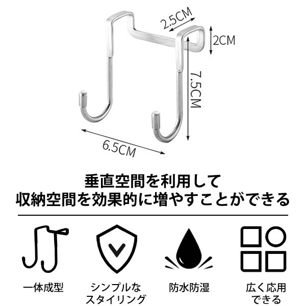 キャビネット ドアフック ショートタイプ 2個セット ダブルフック ステンレス製 穴不要 キッチン 台所 バスルーム お風呂 浴室 引き出し 整理 帽子 鍵 鞄 コート ドア フック キャビネットフック