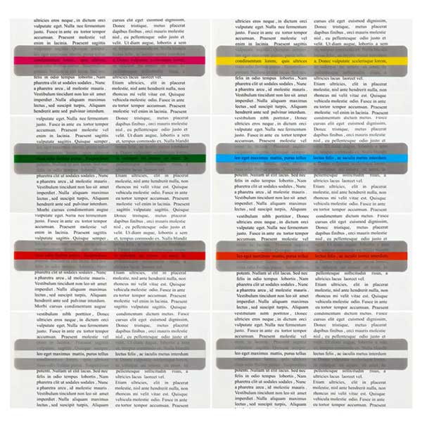 【材料】蛍光色の読書カラーガイドはポリ塩化ビニール素材なので丈夫で長期間使用でき、防水です。