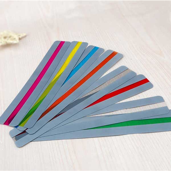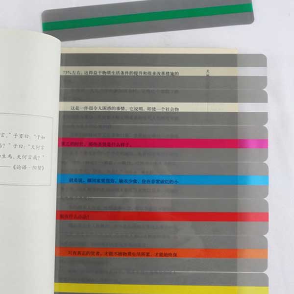 【材料】蛍光色の読書カラーガイドはポリ塩化ビニール素材なので丈夫で長期間使用でき、防水です。