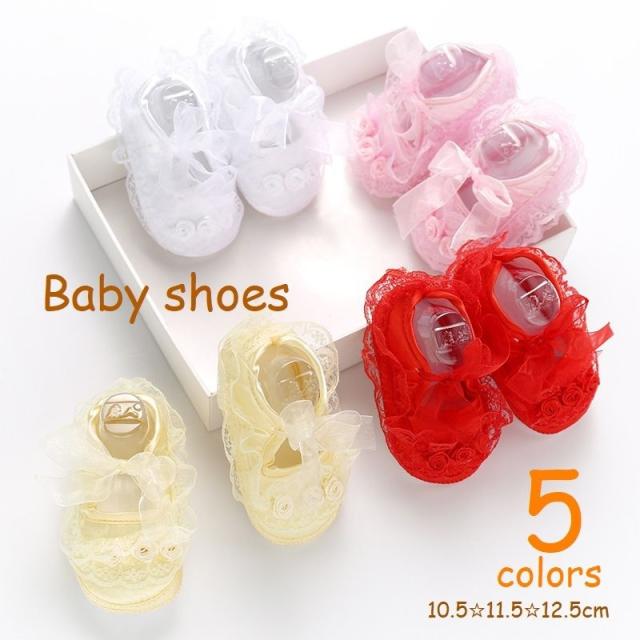 ファーストシューズ ベビー靴 赤ちゃん シューズ レース リボン フラワーモチーフ 軽量 柔らか 滑り止め お宮参り 記念日フォ