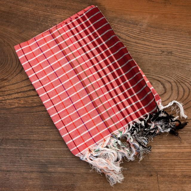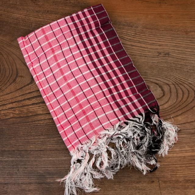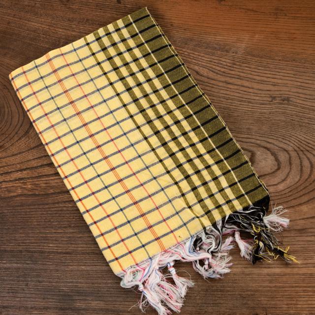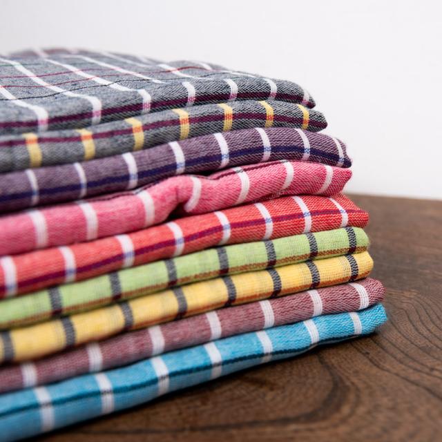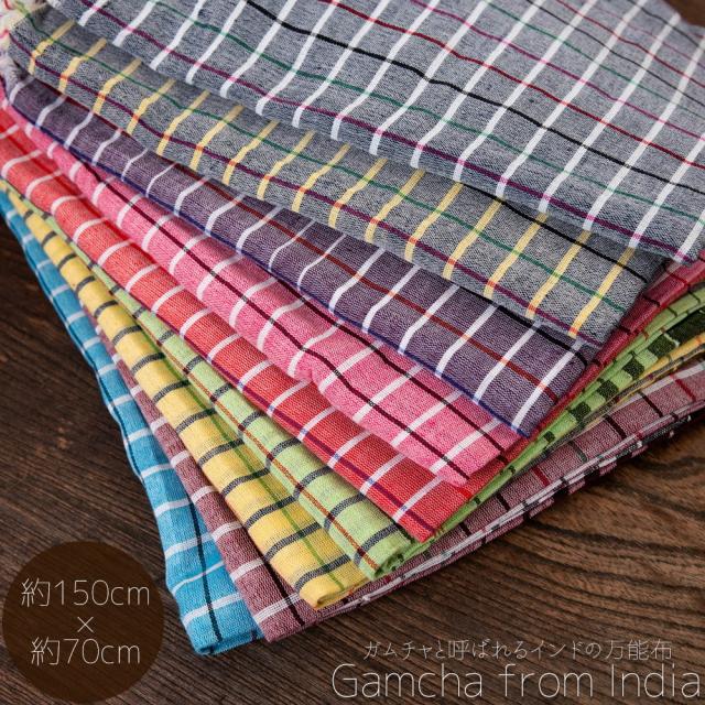 インドの生活感あふれる布、ガムチャと呼ばれる万能布で日本で言う手ぬぐいのような布です。シンプルでざっくりと編まれた鮮やかなチェック柄が可愛く、様々な用途にお使いいただけます。 現地では、祭壇に使用したり、頭に巻いたり、手拭きにしたり。色やサイズに合わせて何にでも◎ざっくりと編まれているから速乾性にも優れており、使えば使うほど、洗えば洗うほど生地が馴染んで柔らかくなってきます。お皿を拭いたり、目隠し布やランチョンマットのように広げて使用しても◎また、大きめサイズならクーラーの風よけや日焼け防止にも使用できます。
