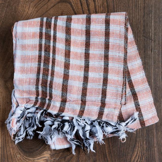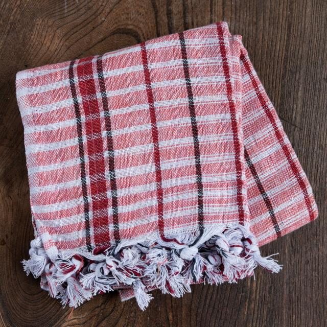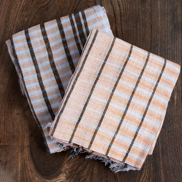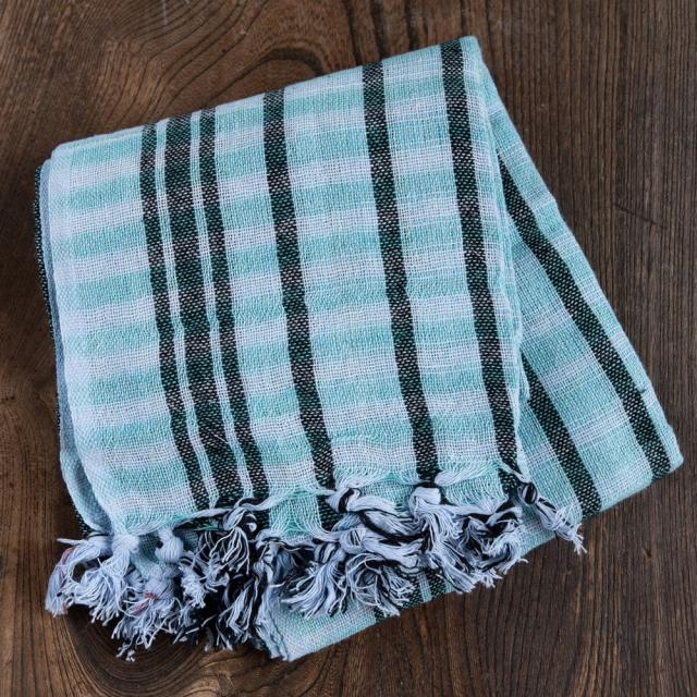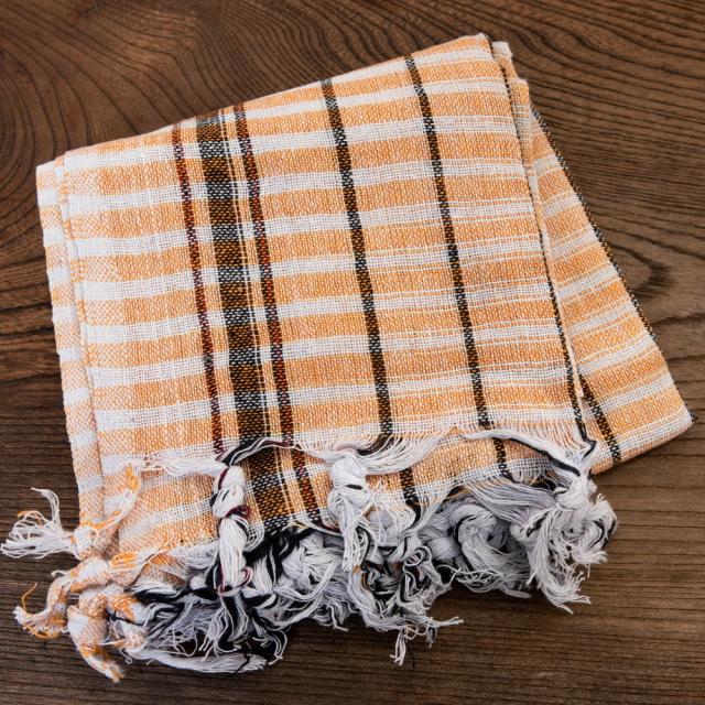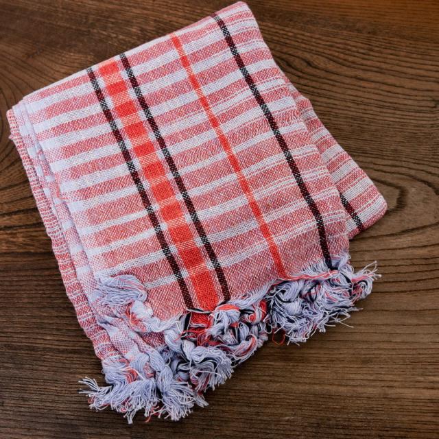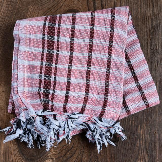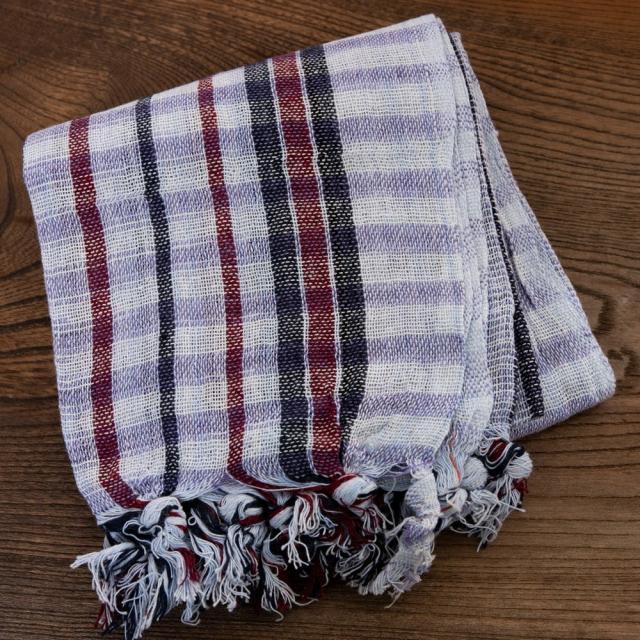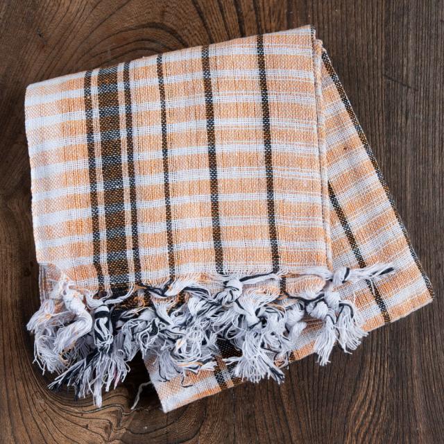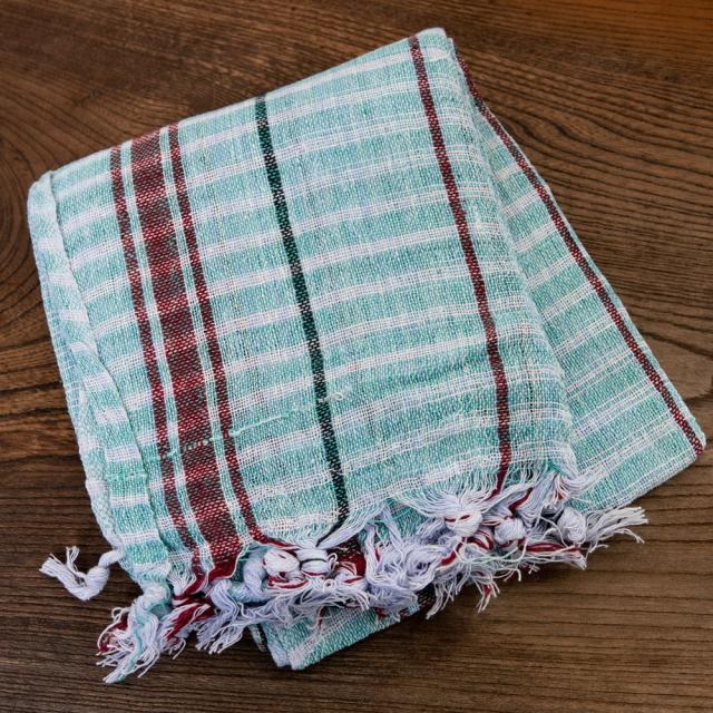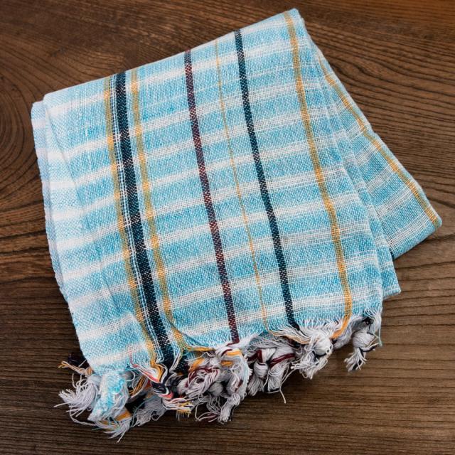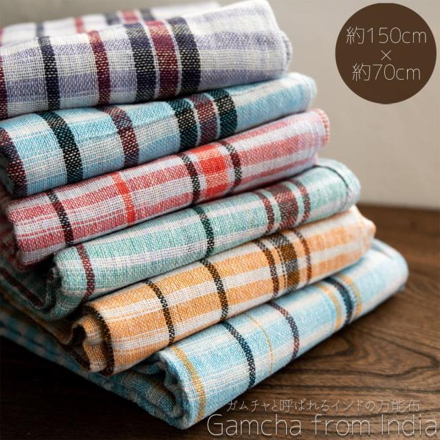 インドの生活感あふれる布、ガムチャと呼ばれる万能布で日本で言う手ぬぐいのような布です。シンプルでざっくりと編まれた鮮やかなチェック柄が可愛く、様々な用途にお使いいただけます。 現地では、祭壇に使用したり、頭に巻いたり、手拭きにしたり。色やサイズに合わせて何にでも◎ざっくりと編まれているから速乾性にも優れており、使えば使うほど、洗えば洗うほど生地が馴染んで柔らかくなってきます。お皿を拭いたり、目隠し布やランチョンマットのように広げて使用しても◎また、大きめサイズならクーラーの風よけや日焼け防止にも使用できます。