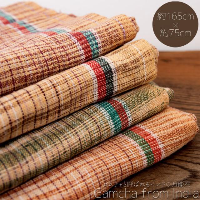 インドの生活感あふれる布、ガムチャと呼ばれる万能布で日本で言う手ぬぐいのような布です。シンプルでざっくりと編まれた鮮やかなチェック柄が可愛く、様々な用途にお使いいただけます。 現地では、祭壇に使用したり、頭に巻いたり、手拭きにしたり。色やサイズに合わせて何にでも◎ざっくりと編まれているから速乾性にも優れており、使えば使うほど、洗えば洗うほど生地が馴染んで柔らかくなってきます。お皿を拭いたり、目隠し布やランチョンマットのように広げて使用しても◎また、大きめサイズならクーラーの風よけや日焼け防止にも使用できます。