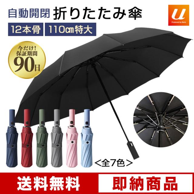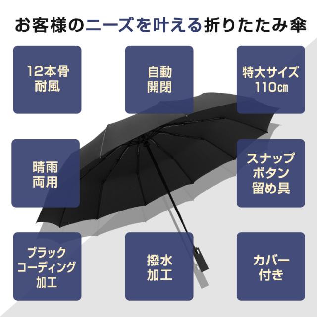 12本骨 折りたたみ傘 頑丈 耐風 自動開閉 ワンタッチ 晴雨兼用 日傘兼用 特大 110cm 風に強い 丈夫 収納ポーチ カバー付き 大きい 折り畳み式 折り畳み傘 遮光 紫外線対策 雨 撥水 濡れない 晴雨傘 レディース メンズ 男女兼用 黒 ギフト プチギフト