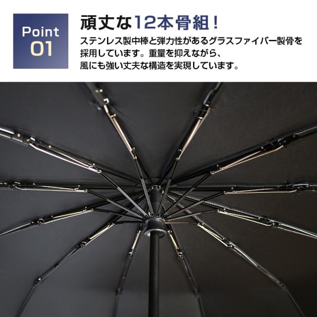 ・風に強い12本のグラスファイバー骨組を使用。頑丈で耐久性があり、長くご使用いただけます。