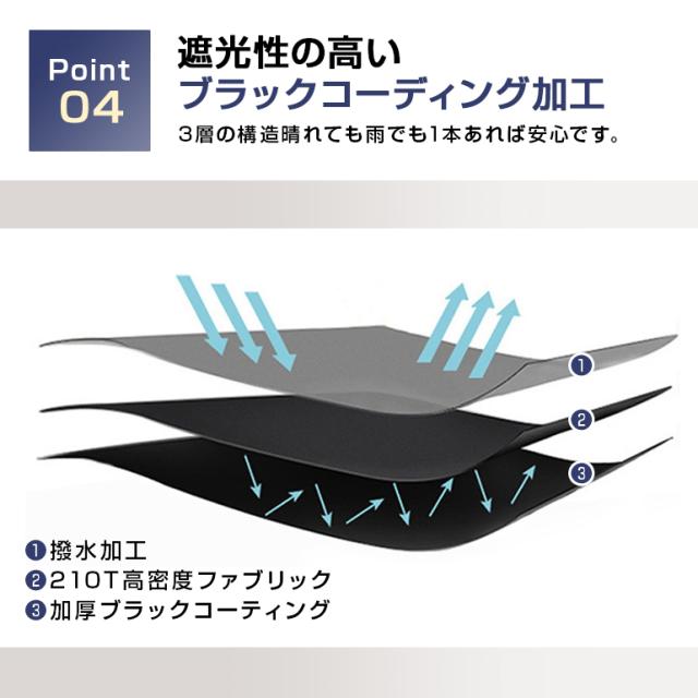 ・遮光性が高く照り返しに強いブラックコーディング裏地で、紫外線と暑さを軽減。