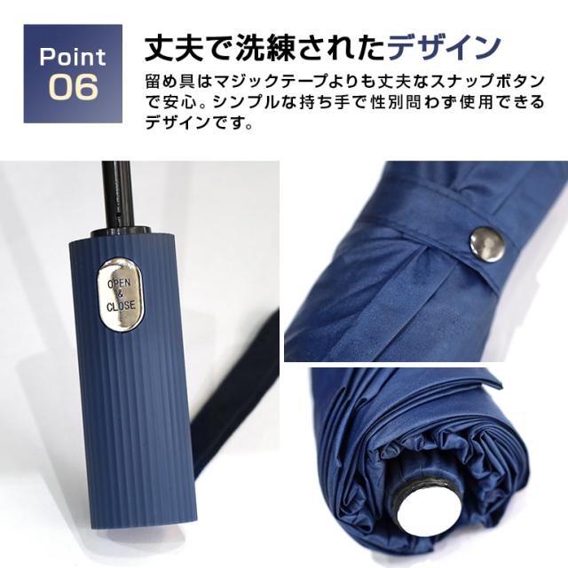・傘面の曲面長さが120cmと大きいサイズで豪雨にも耐えられます。留め具には丈夫なスナップボタンを採用。