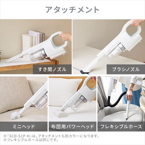 充電アダプター、充電スタンド、静電モップ、モップ帯電ケース、すき間ノズル、ブラシノズル、フレキシブルホース、ミニヘッド、布団用パワーヘッド、クリーニングブラシ、アタッチメント収納袋