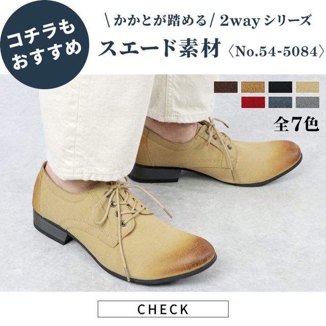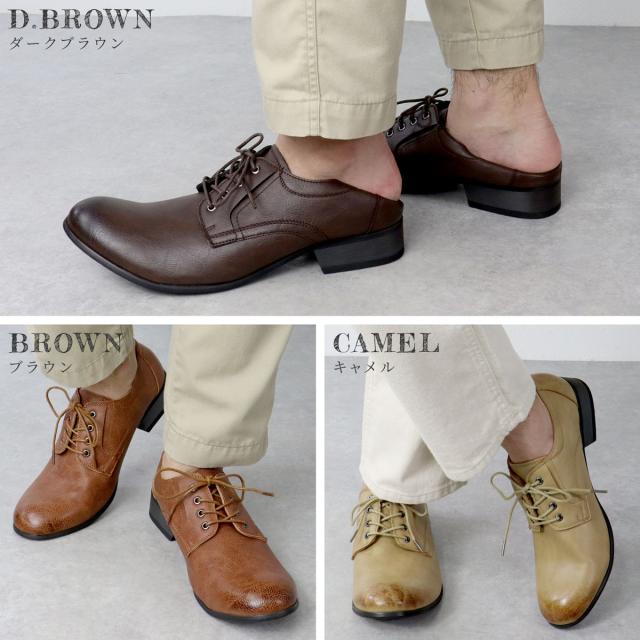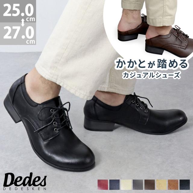 カジュアルシューズ メンズ バブーシュ かかとが踏める 2way スムースレザー 紐靴 すぐ履ける 3.5cmヒール No.5117 25.0〜27.0cm 黒 デデス