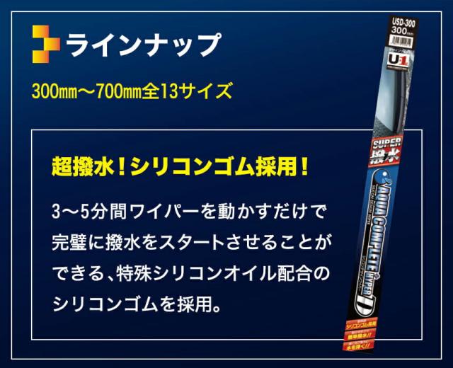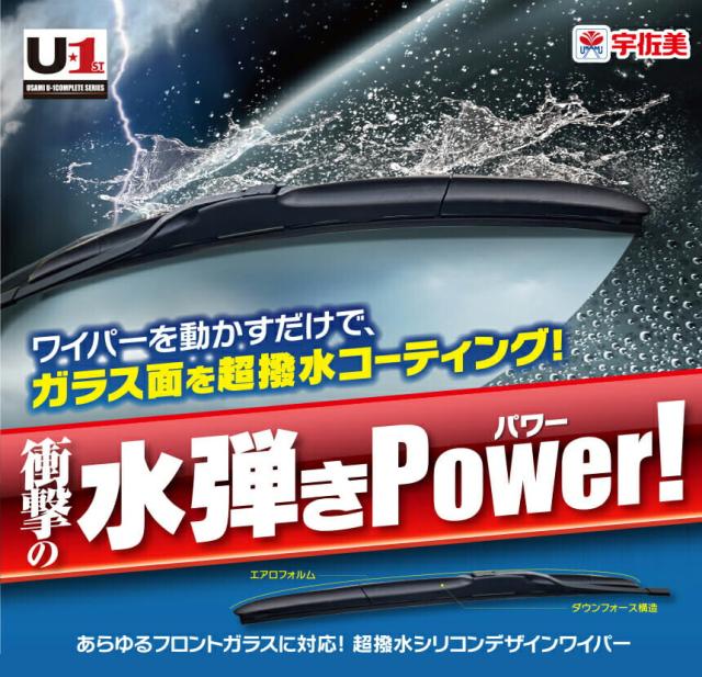 梅雨対策 ワイパー ワイパーブレード シリコンゴム 超撥水 宇佐美オリジナル U-1 アクアコンプリート+ハイパーD 工具不要