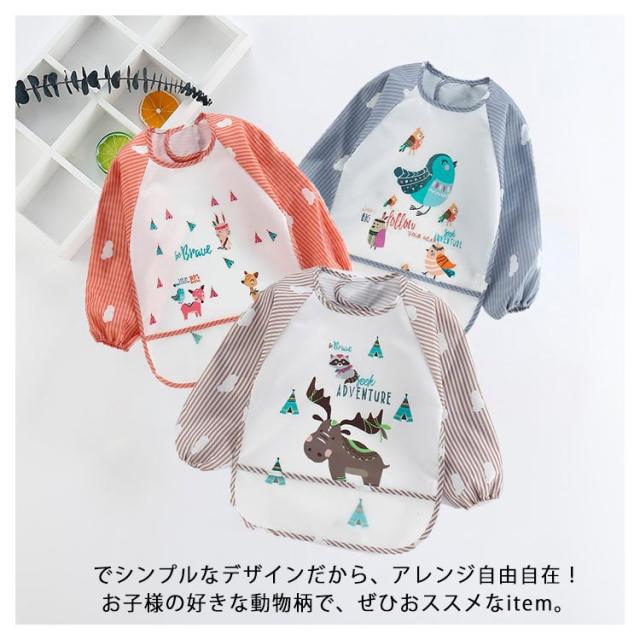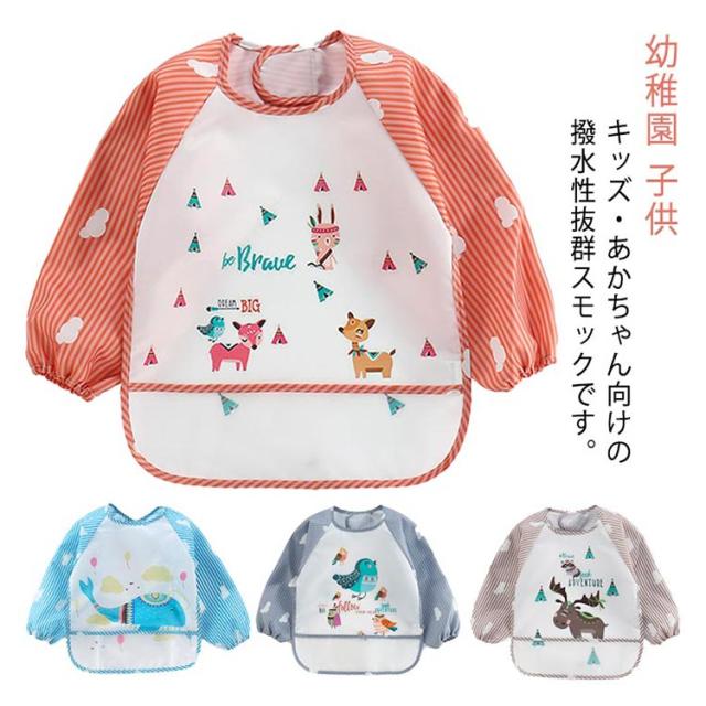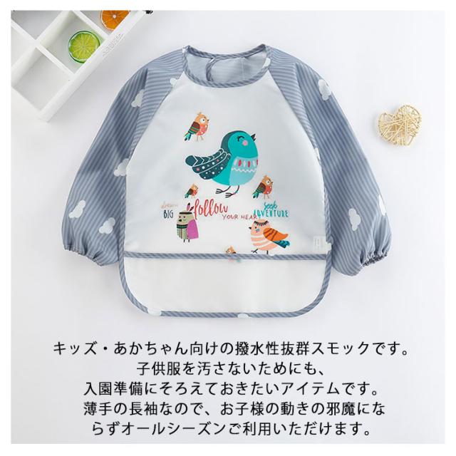 スモッグ 女の子 男の子 動物柄 お食事エプロン ベビー用エプロン アイロン不要 抗菌・防臭加工 防水 ベビー 赤ちゃん エプロン スタイ 子供 おしゃれ かわいい プリント 3歳 2歳 1歳 出産祝い 送料無料