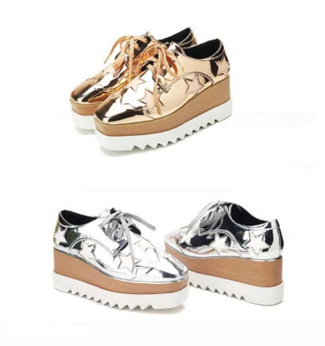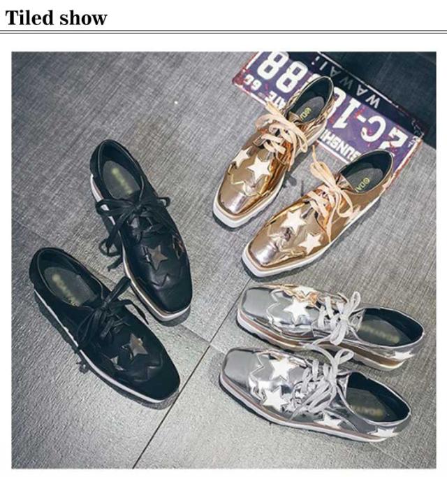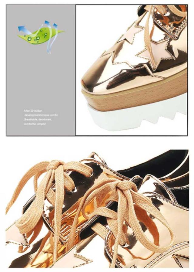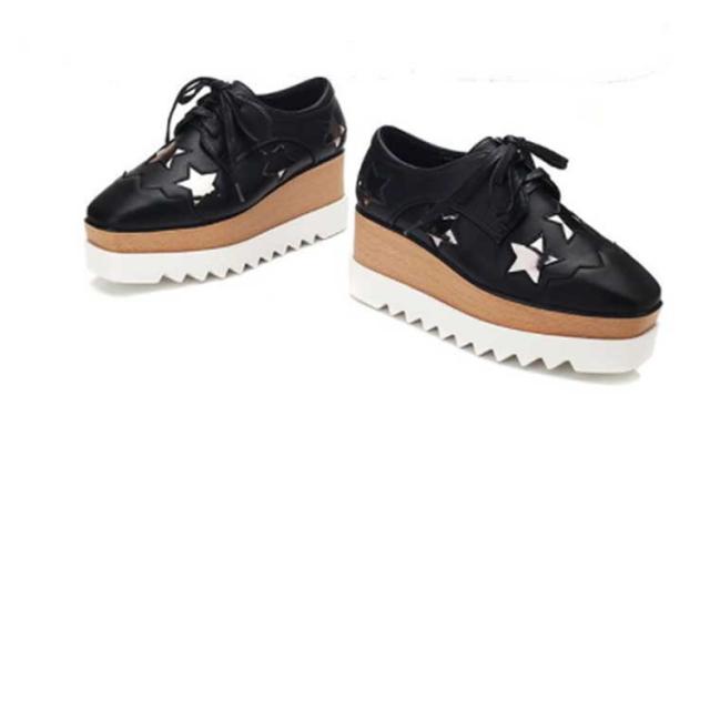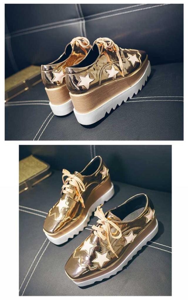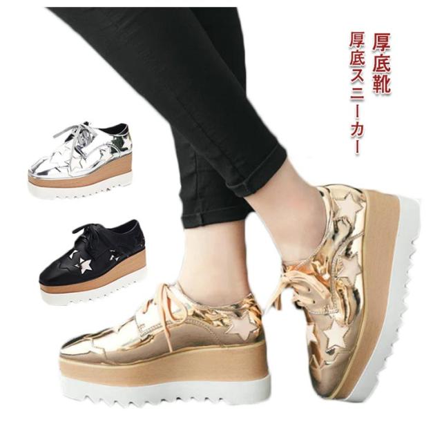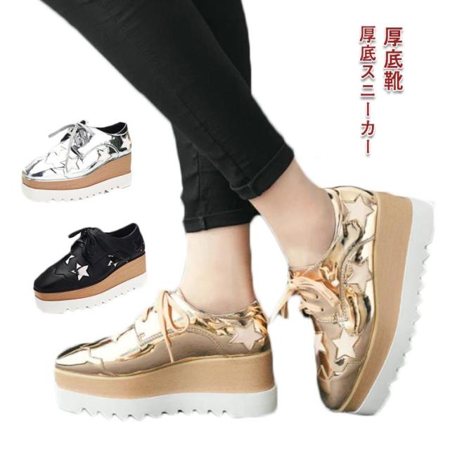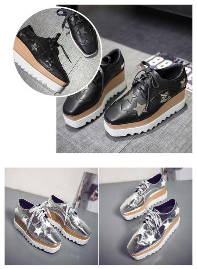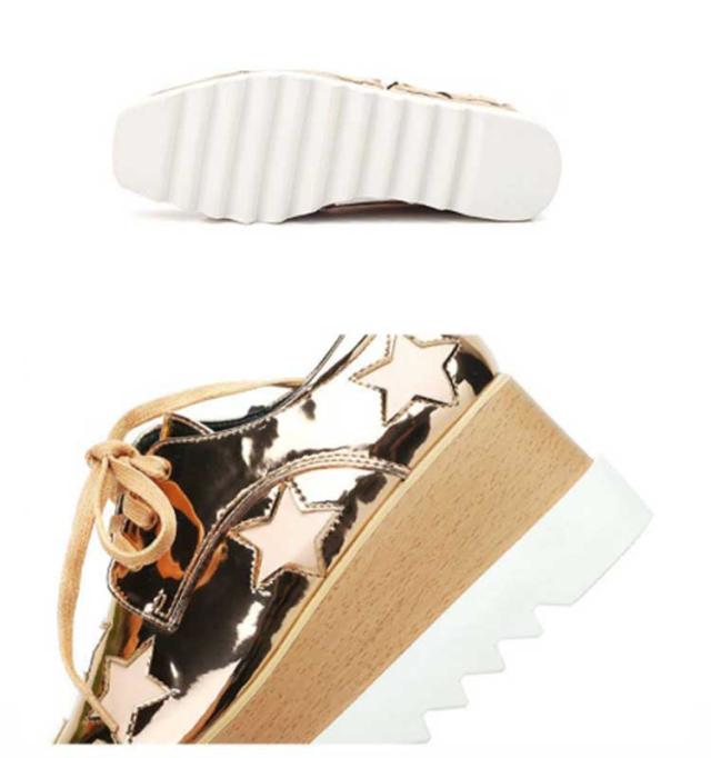 厚底 ウェッジ 厚底靴 厚底スニーカー プラットフォーム スクエア パンプス スター柄 星 星柄 エナメル ツヤあり インヒールスニーカー ウェッジソール レースアップ 原宿系ファッション 韓国ファッション