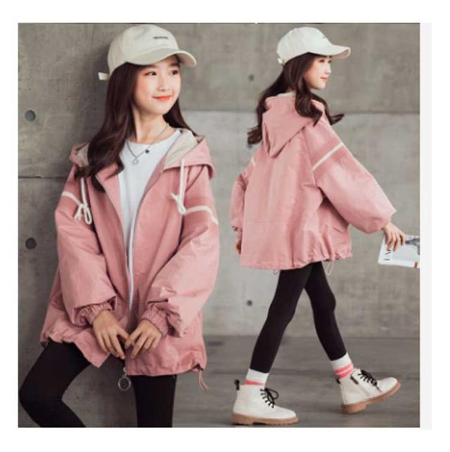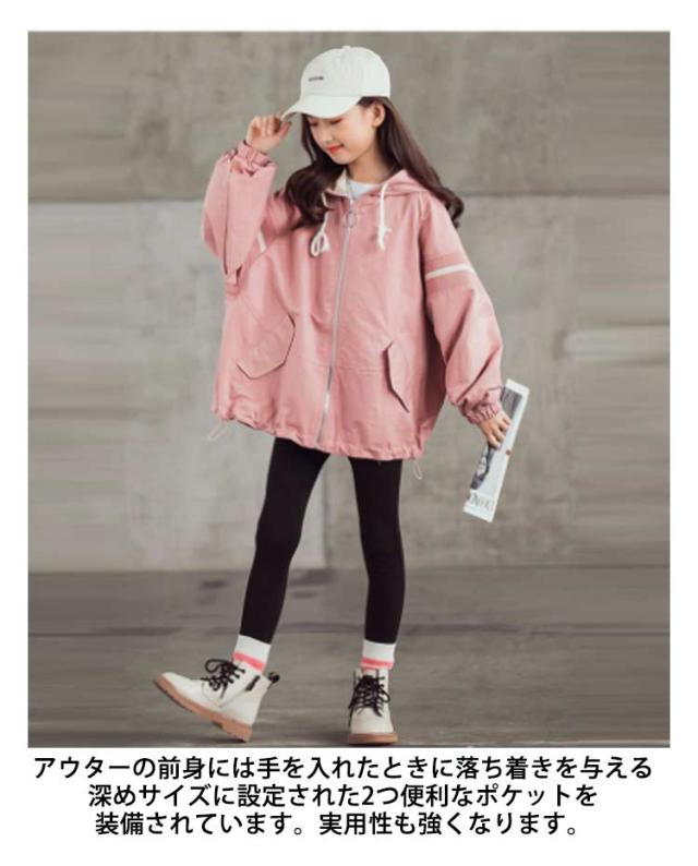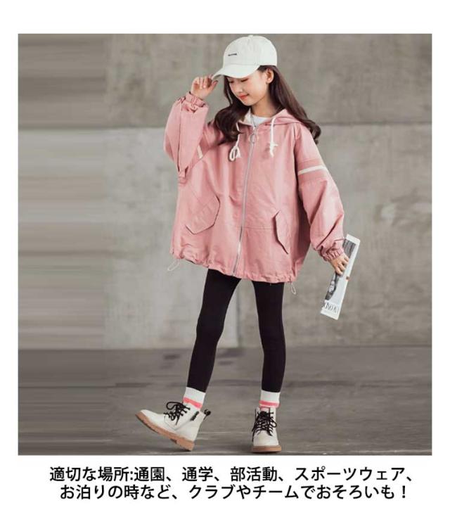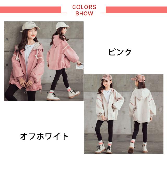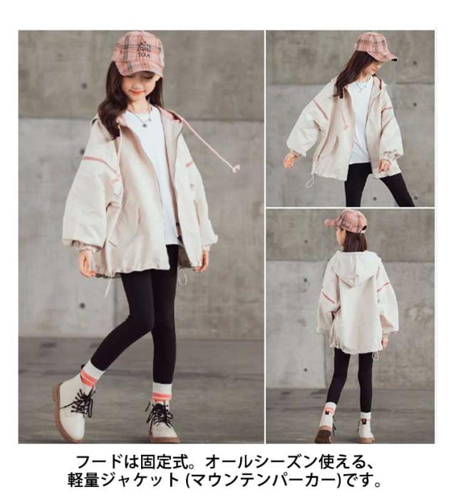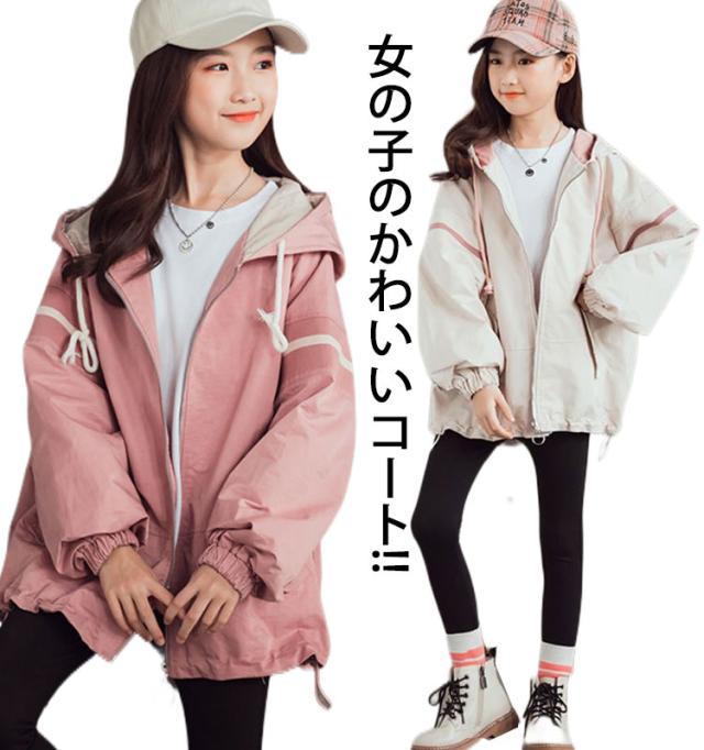 送料無料 スプリングコート 女の子 薄手 マウンテンパーカー キッズ ジャケット ジャンパー ウインドブレーカー ジャージ 切り替え 春 アウター フード付き 長袖 子供服 秋 秋服 かわいい 120 130 140 150 160 170
