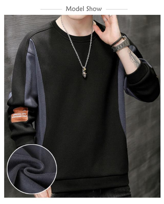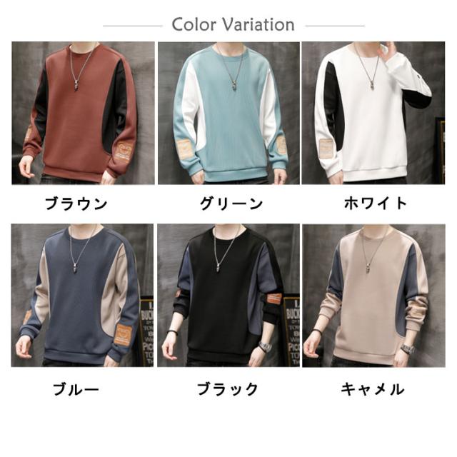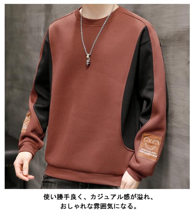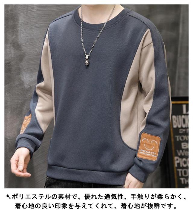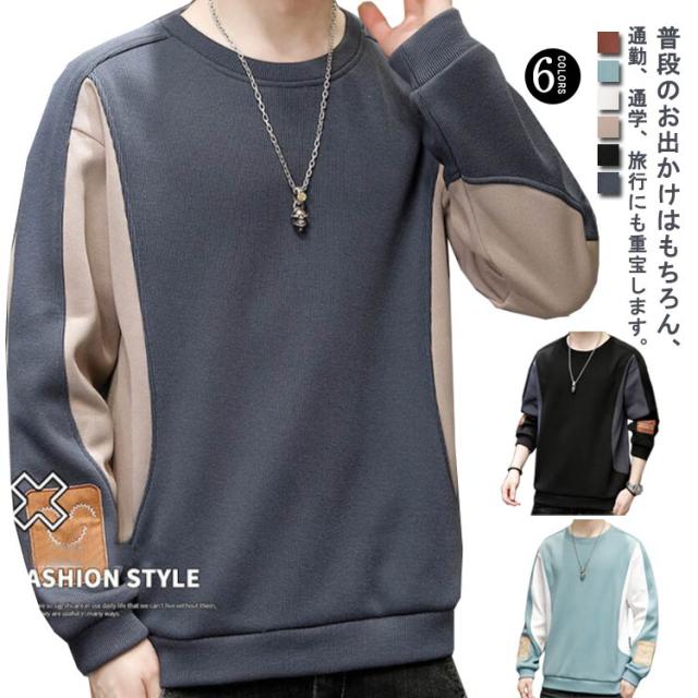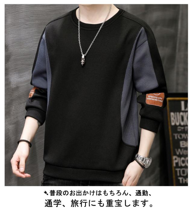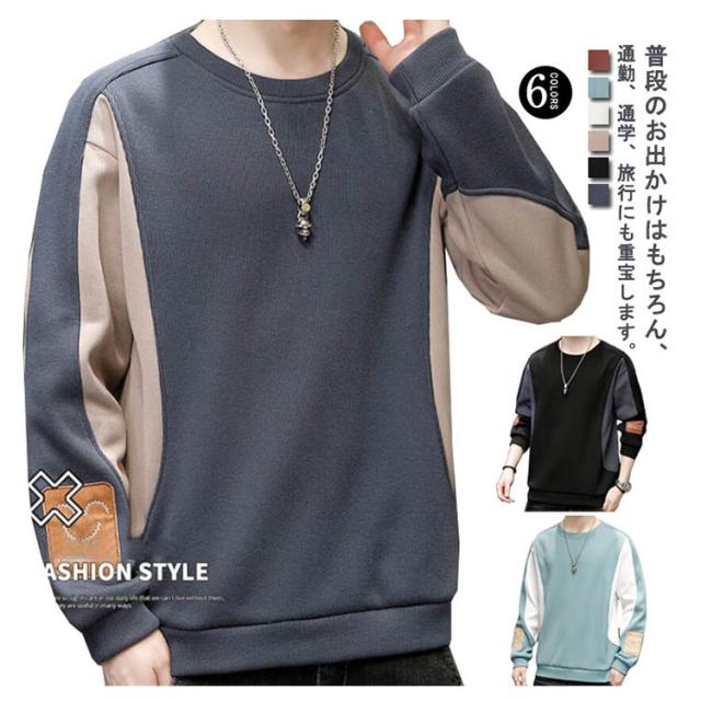 送料無料 メンズ 長袖 Tシャツ 秋冬 スウェット 丸首 パーカー トレーナー トップス プルオーバー 切り替え クルーネック おしゃれ かっこいい 無地 シンプル Uネック スポーツ ルームウェア あったかい 暖かい 防寒 保温 ストレッチ カジュアル 大きサイズ M-5XL