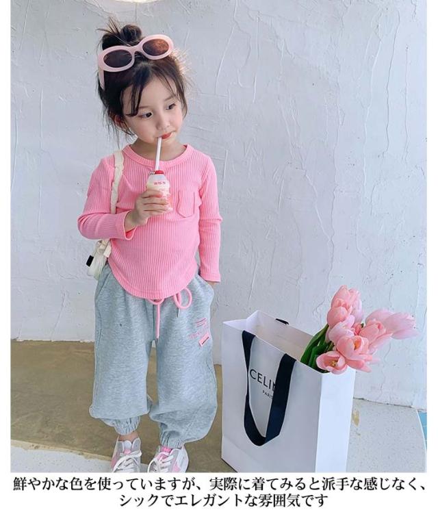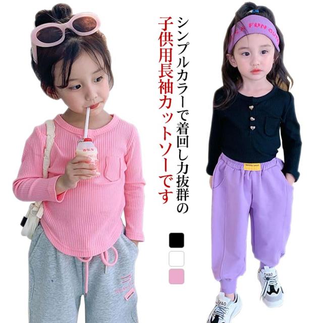 送料無料 Tシャツ キッズ 長袖 カットソー トップス トレーナー 女の子 可愛い スウェット シンプル かわいい ロンT 子供服 きれいめ 無地 クルーネック カジュアル 着まわし 着回し