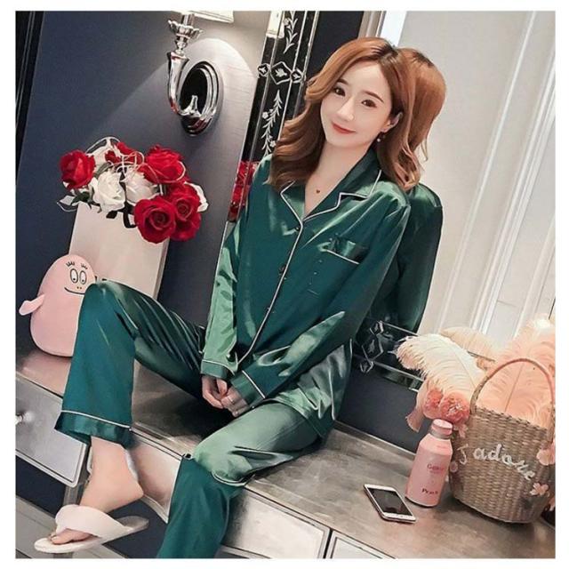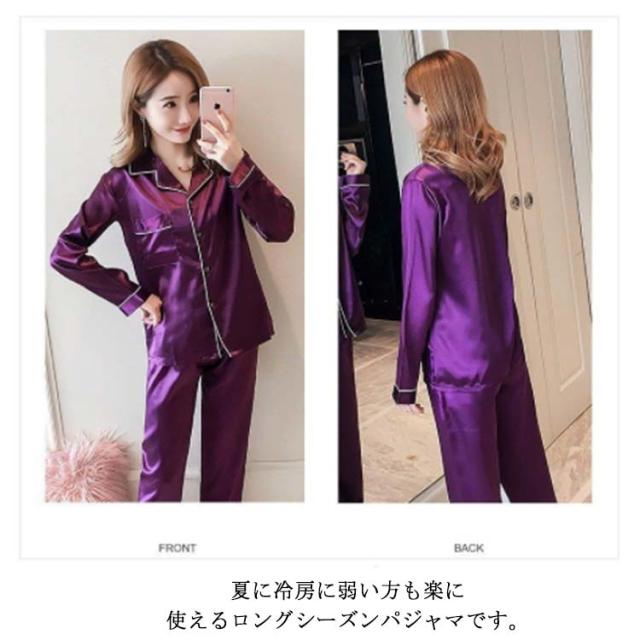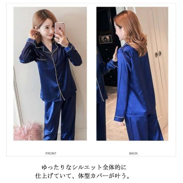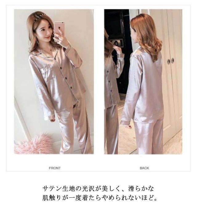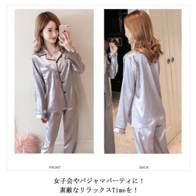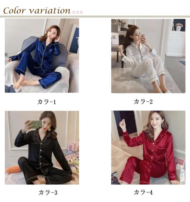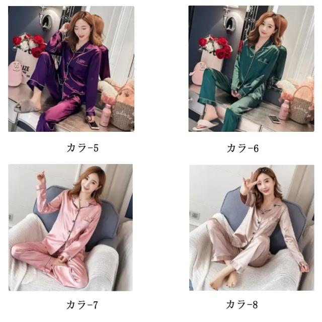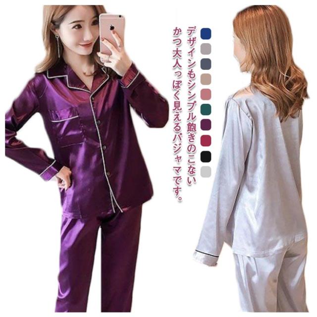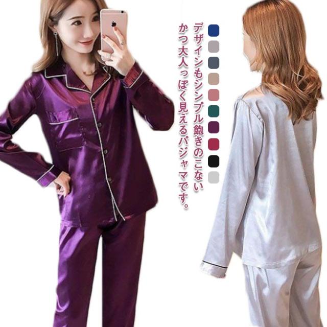 パジャマ レディース ルームウェア サテン 上下セット 2点セット セットアップ 可愛い ナイトウェア 寝巻き 部屋着 前開き 長袖 ロングパンツ 旅行 入院 快適 プレゼント 女性用 高級感 無地 大きいサイズ 送料無料