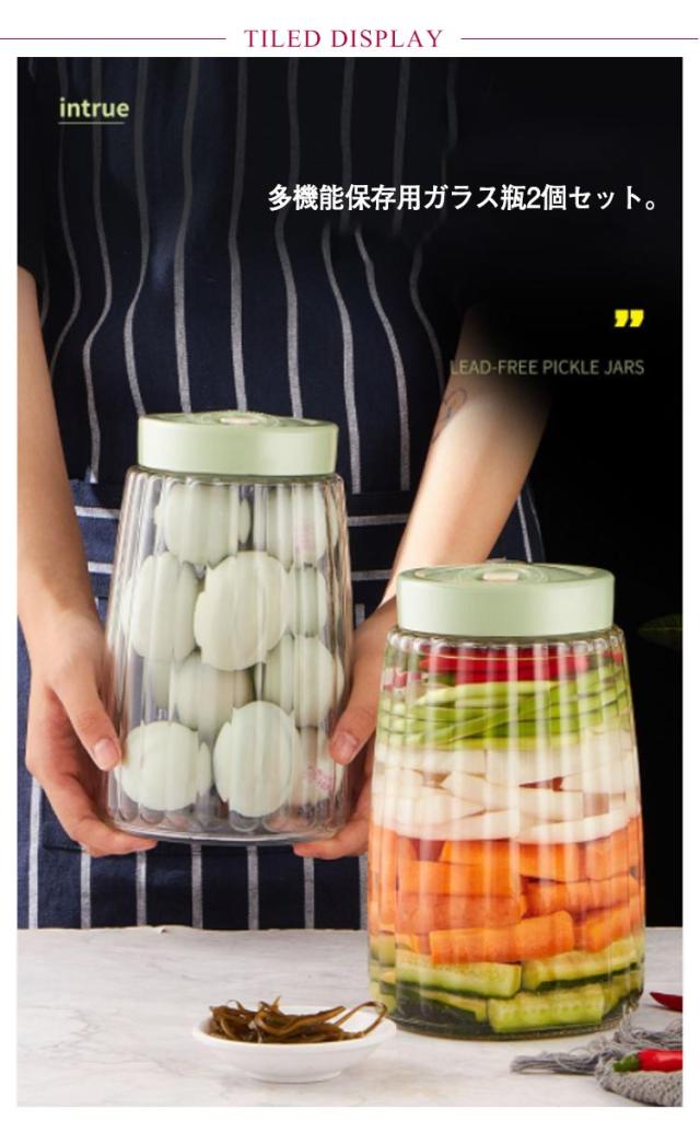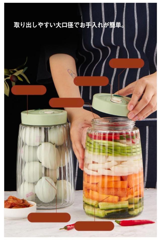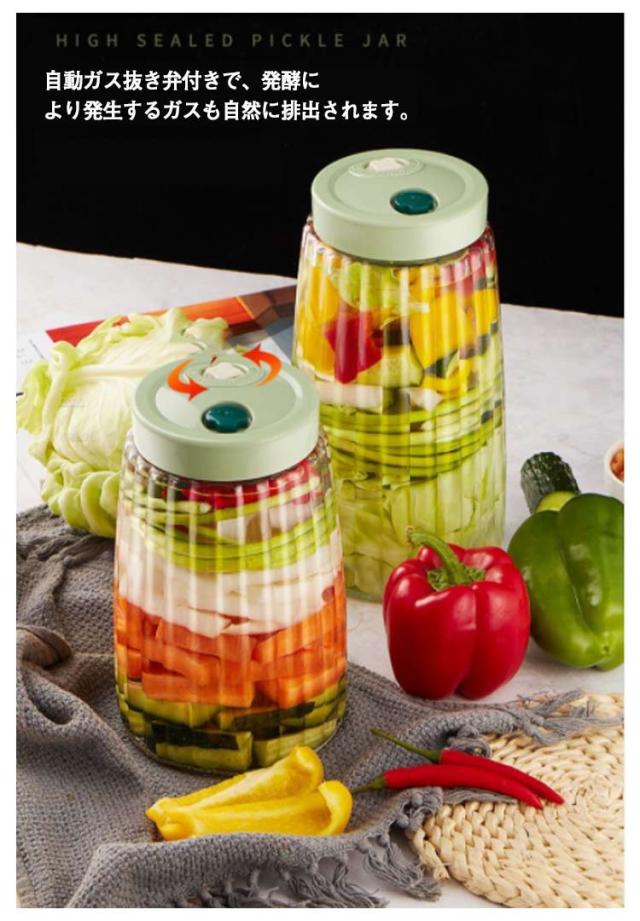 | 多機能保存用ガラス瓶2個セット。 取り出しやすい大口径でお手入れが簡単。 自動ガス抜き弁付きで、発酵により発生するガスも自然に排出されます。 さらに、手動ガス抜き弁もついているので、手軽に蓋の開け閉めができます。 デザインがおしゃれ、耐久性もバツグン。 | |