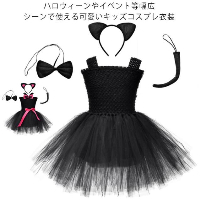 【送料無料】ハロウィン 衣装 コスプレ 子供 女の子 ワンピース 猫耳 魔女 小悪魔 ハロウィーン チュチュ 子供ドレス スカート Halloween コスプレ衣装 ボリューム感 イベント パーティー 演出 変身 かわいい ギフト プレゼント