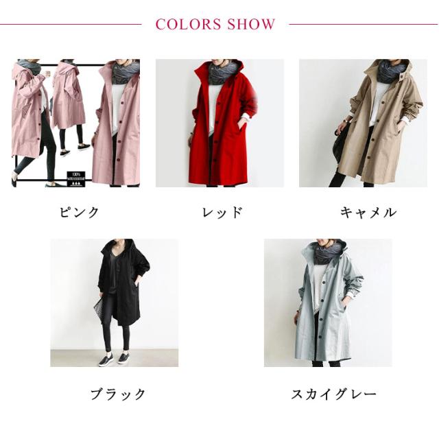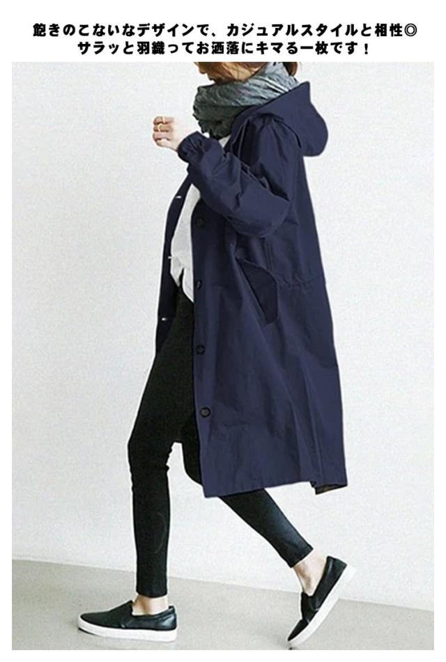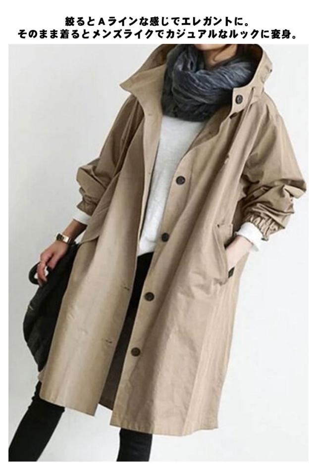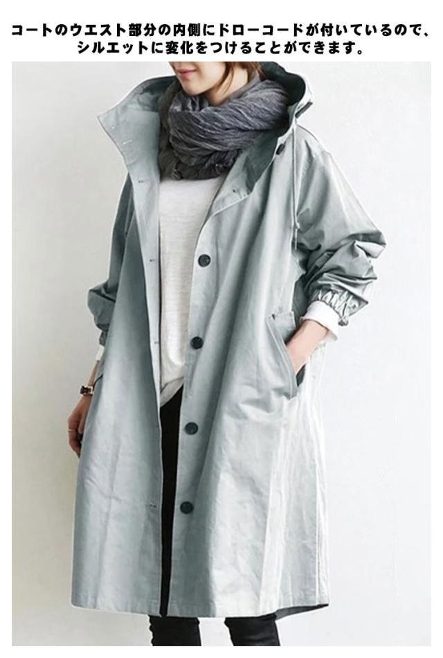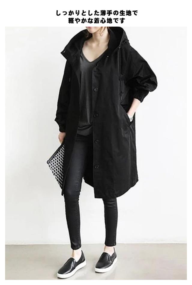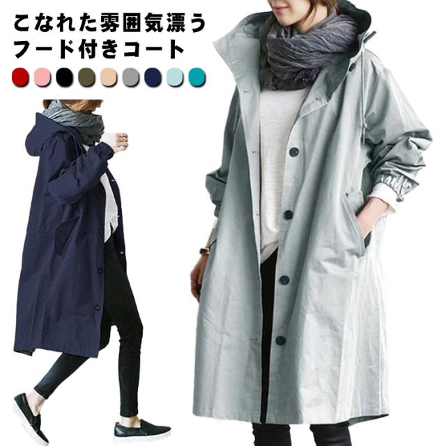 トレンチコート アウター レディース 長袖 フード付き 薄手 コート 裏地あり おしゃれ カジュアル 羽織り ボタン 軽量 通勤 秋 無地 全9色