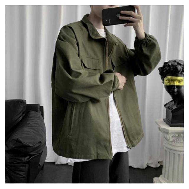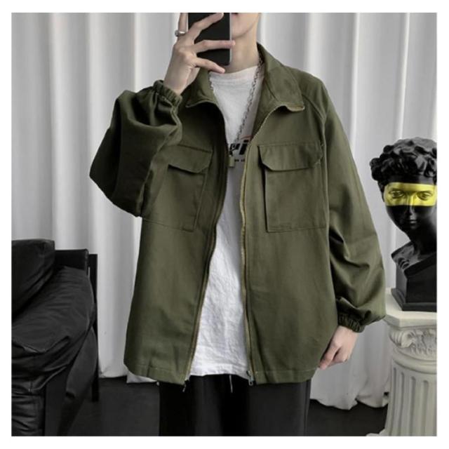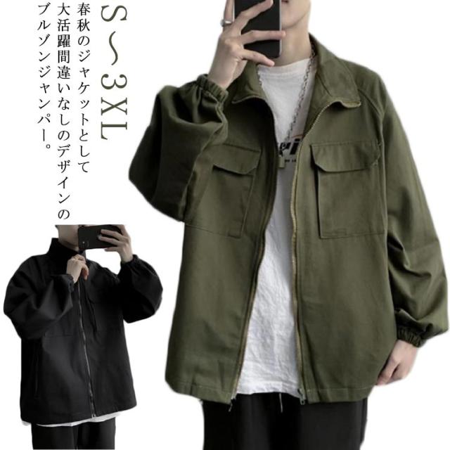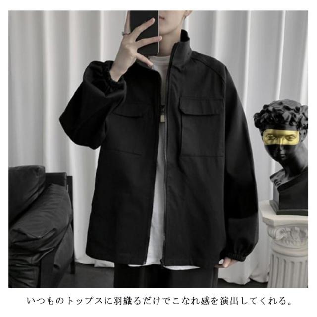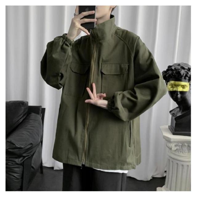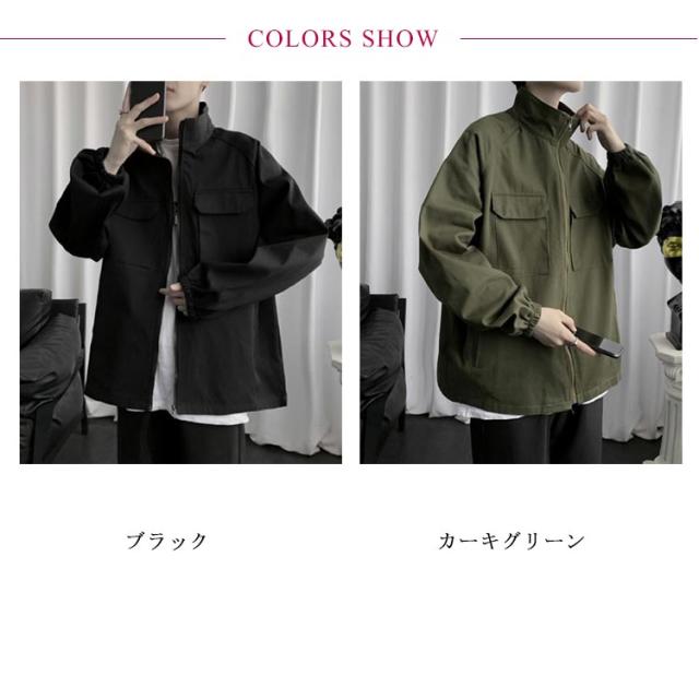 メンズ モッズコート スプリングコート 春ジャケット シャツコート 長袖 無地 シンプル ビッグシルエット オリーブ カーキ 緑 ワークジャケット S M L XL 3L 春 夏 秋