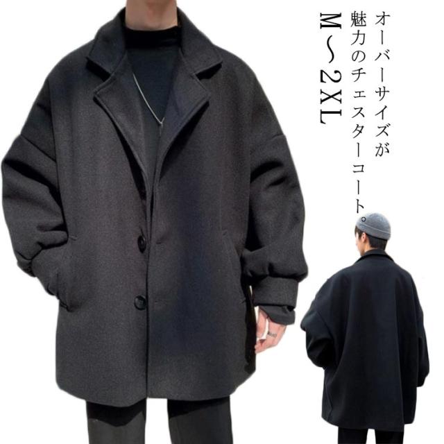 コート メンズ 冬 チェスターコート ロング ビッグシルエット オーバーサイズ コート 大きいサイズ メンズ アウター メルトン コート チェスターコート 韓国 ファッション 秋冬