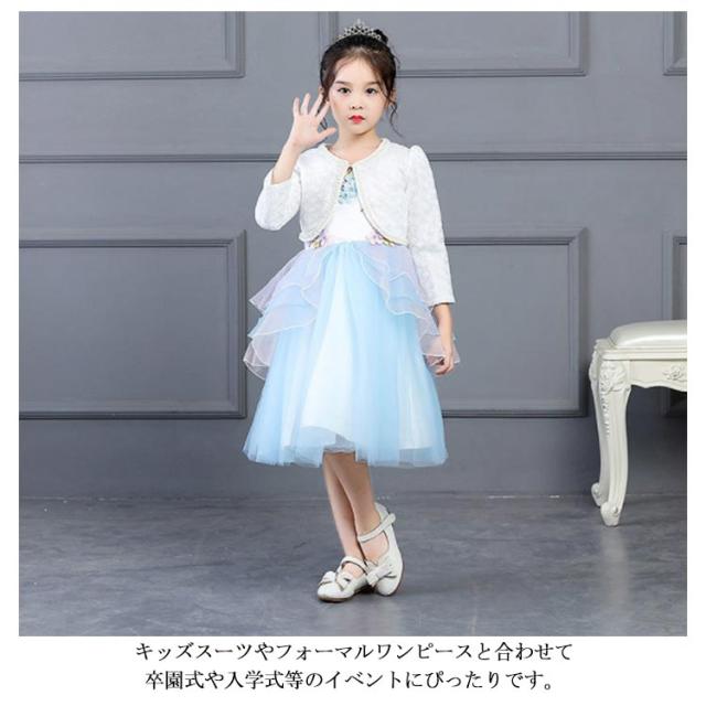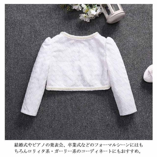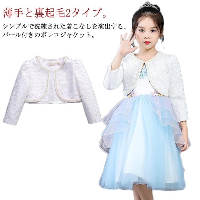 キッズ ボレロ ジャケット 薄手と裏起毛2タイプ レース パール 女の子 フォーマル スーツジャケット ジュニア 羽織り カーディガン 長袖 結婚式 ピアノ発表会 お宮参り 入学式 白 80 90 100 110 120 130 140 150 cm 【送料無料】