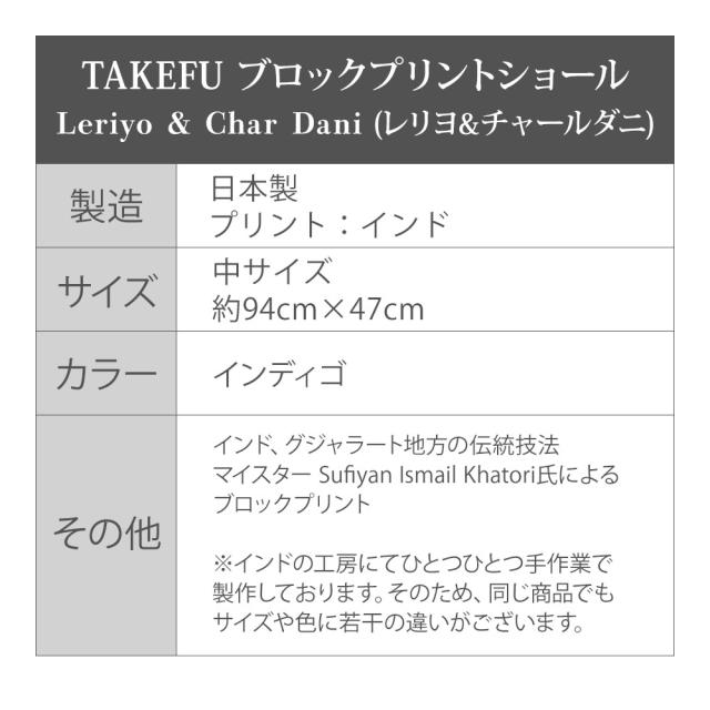TAKEFUブロックプリントショールLeriyo&CharDani(レリヨ&チャールダニ)中サイズ世界のマイスターとのコラボレーション