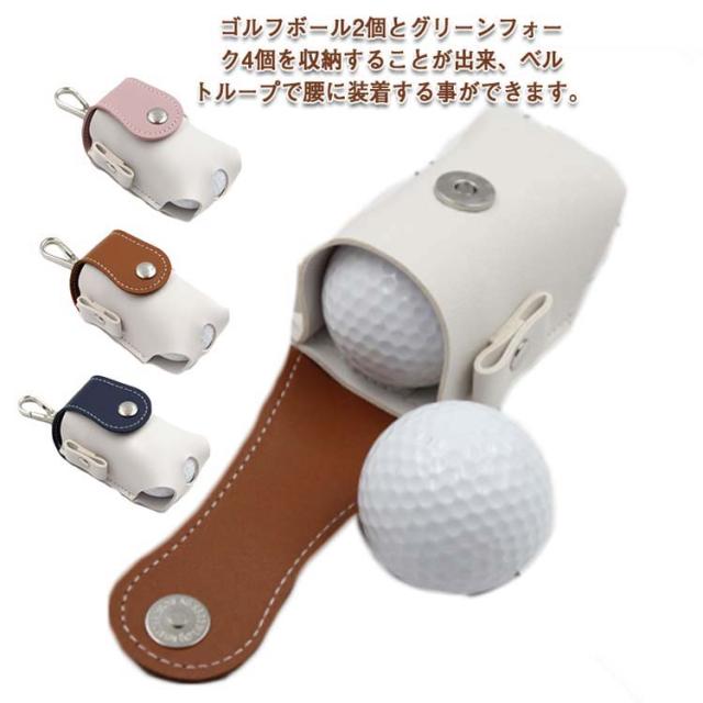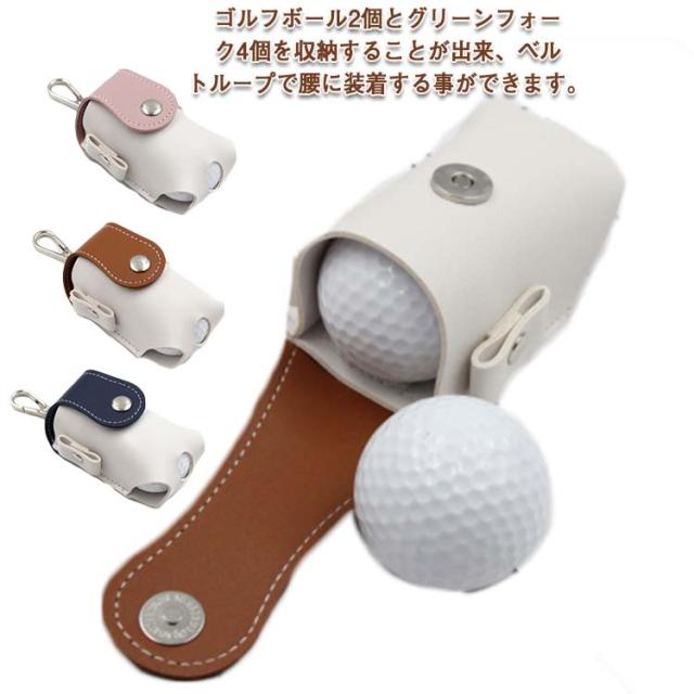 ゴルフ ボールケース ボール 2個収納 メンズ レディース ベルト ボールポーチ ボールホルダー おしゃれ シンプル かわいい レザー 合成皮革 ゴルフ小物 ゴルフ用品 ボール入れ 軽量 便利 フォーク 収納ケース プレゼント 送料無料