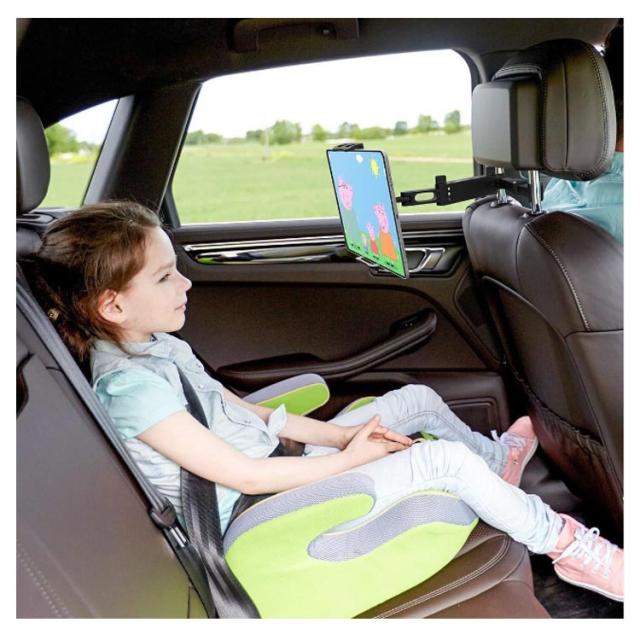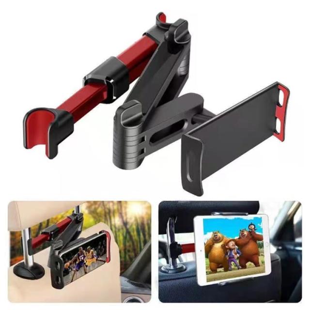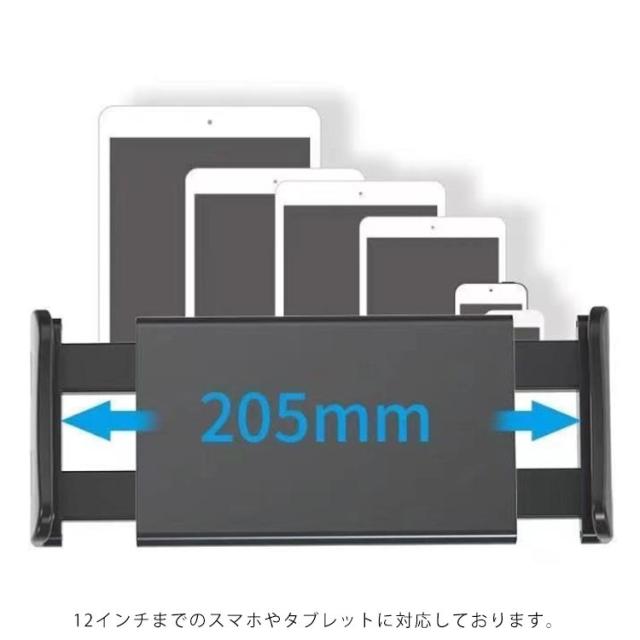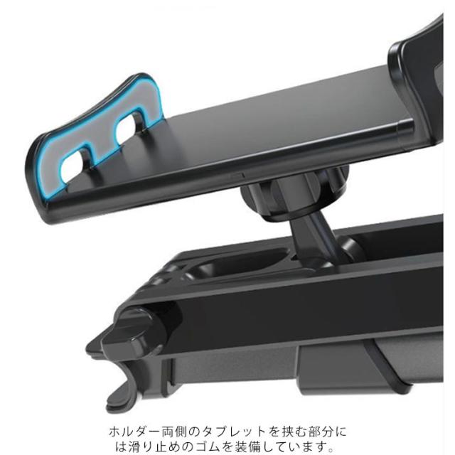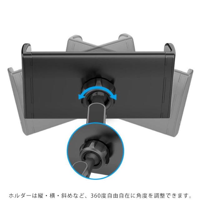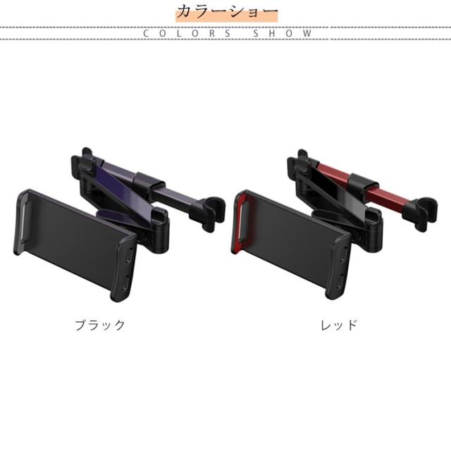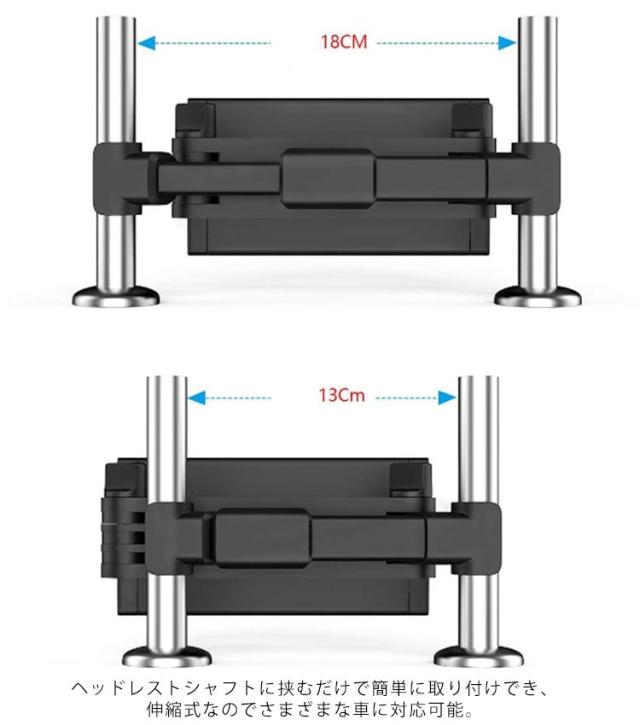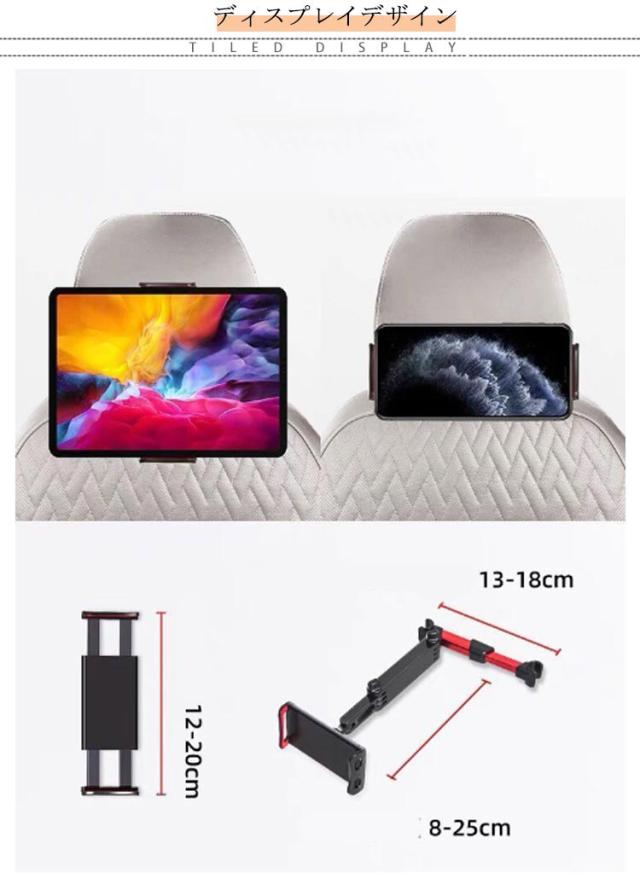 | 後部座席用タブレットホルダー ホルダーは縦・横・斜めなど、360度自由自在に角度を調整できます。 ヘッドレストシャフトに挟むだけで簡単に取り付けでき、伸縮式なのでさまざまな車に対応可能。 12インチまでのスマホやタブレットに対応しております。 | |