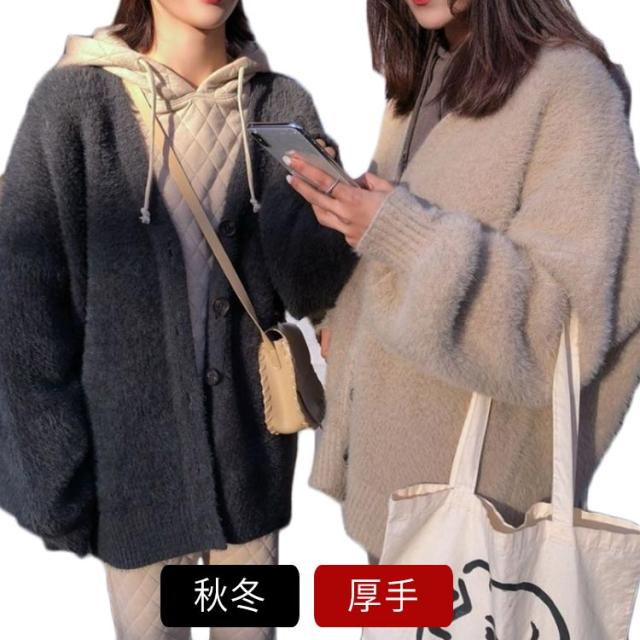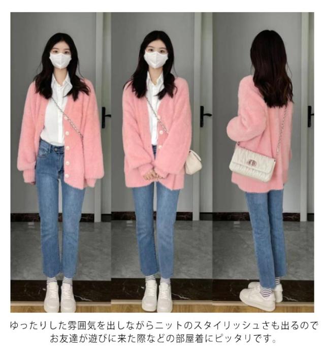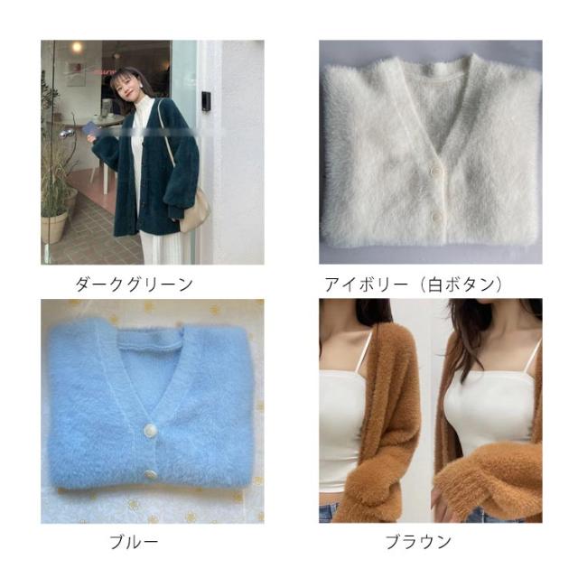 カーディガン レディース ニットカーディガン ゆったり 秋冬 カーデ ショート丈 モヘア風 モヘアライク 厚手 無地 ボタン フェミニン 大人 おしゃれ モヘヤカーディガン 大人ニット