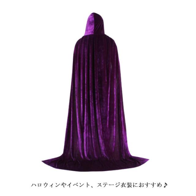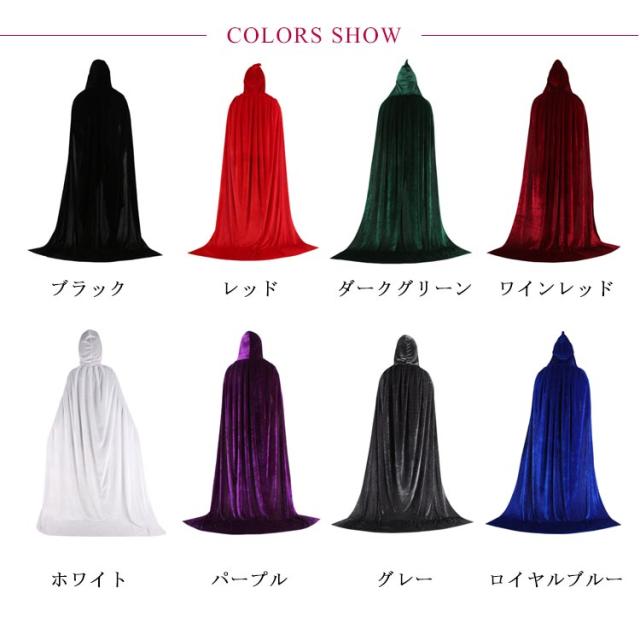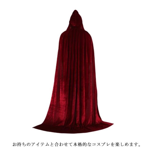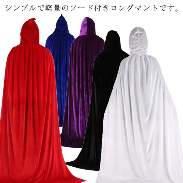 コスプレ マント フード付 ハロウィン ロング 仮装 男女兼用 メンズ レディース キッズ ジュニア ベルベット調 フードあり 文化祭 学園祭 変装 余興 パーティー イベント 無地 全8色