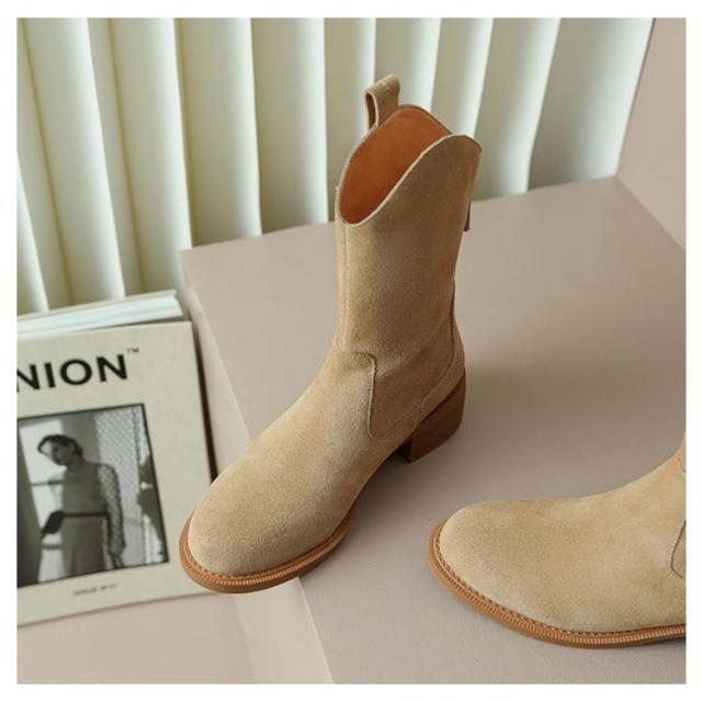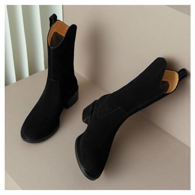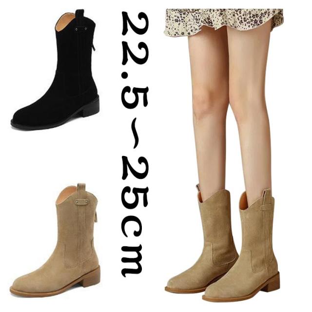 | スタイリッシュで美しいレッグラインが魅力的なウエスタンブーツ! スエード素材のほっこりとした温かみが足元を落ち着いた印象にしてくれます。 歩きやすく、見た目も美しい人気のミドルヒールは安定感抜群の太めタイプ。 パンツでブーツインやスカート、ショートパンツ、どんなスタイルにも合わせられる1足! | |