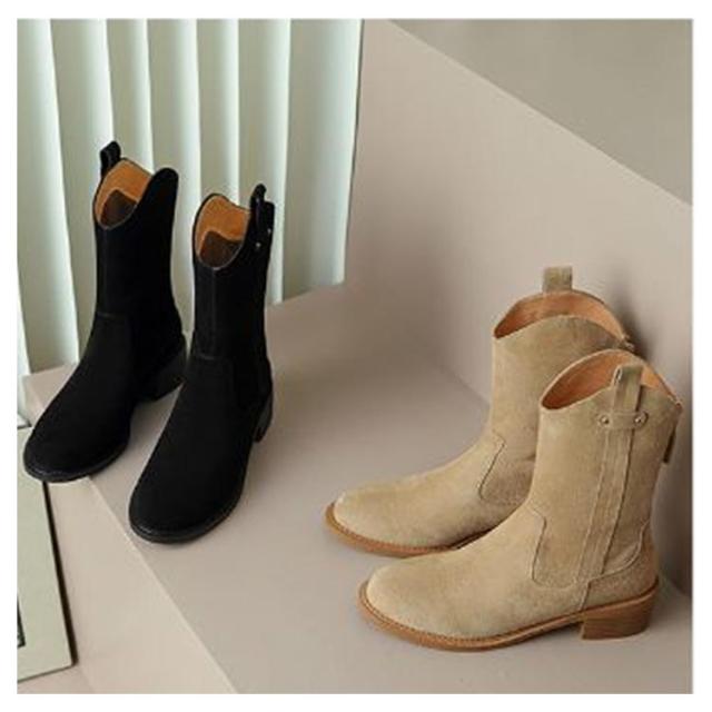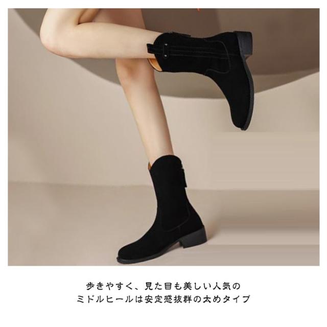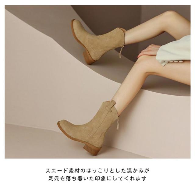 ショートブーツ ウエスタンブーツ ローヒール フラット レディース 靴 婦人靴 黒 茶色 ブラック ブラウン スエード