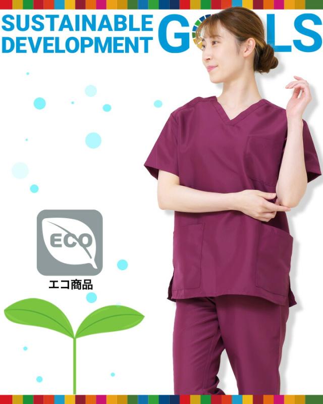 環境に優しい素材を使用した、帯電防止・速乾性のあるスクラブ。